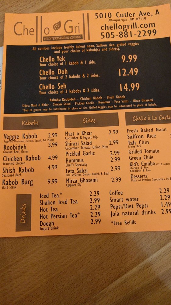 Welcome to Chello Grill, a culinary gem nestled in Albuquerque, NM, renowned for its authentic Persian and Mediterranean offerings. This charming eatery boasts a menu that caters to all dietary preferences, featuring an array of vegan and vegetarian options amidst their hearty selections, ensuring everyone finds something delightful.